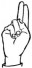 На ћирилици написано ЛЕОНИДА СРЕТЕНИЈЕВИЋ састоји се из 19 слова [?]. Исписано ћириличном једноручном азбуком за глувонеме:
